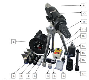 主機箱(A) 1個 配件箱(B) 1個 主機 1臺 三腳架 1個 水壺 1個 線盤 1個 起爆器 1個 電發(fā)火彈 10個 彈筒 1個 鏟形切刀彈 3個 錐形有機玻璃彈 3個 圓柱形鋼芯彈 3個 圓錐形鋼芯彈 3個 棘輪扳手 1個 退彈桿 1個 水堵 10個 連接短線 1根 合格證 1個 說明書 1份