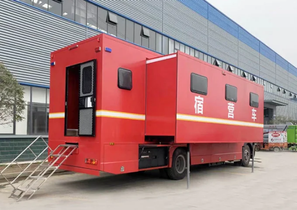 3、整車自行式設(shè)計(jì),機(jī)動性能好,適合公路運(yùn)輸,可提供野外宿營、洗漱、休閑等功能,保障能力強(qiáng);整車配有空氣調(diào)節(jié)系統(tǒng),生活舒適度好,可雙側(cè)擴(kuò)展,空間利用率大。