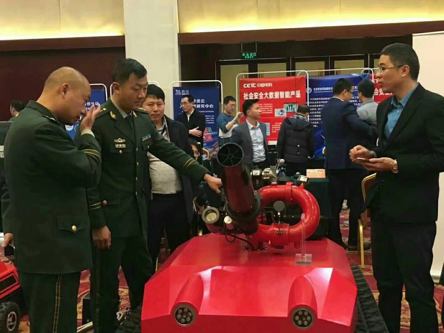 需求牽引,貼近實戰,科技強警,科技興安,科學救援,用科技提北京城市安全水平,由中關村管委會主辦的中關村智慧公共安全新技術新產品供需對接會18號在北京舉行,北京市公安局、消防局、安監局、市屬高校、市屬國企及區縣政府部門的80余家用戶單位200余人共同參加了活動,現場氣氛熱烈,供需雙方都有收獲。北京凌天主要負責人作《智慧公共安全關鍵技術裝備》的專題報告,向參會專家介紹了北京凌天將機器人,人工智能,物聯網技術應用于公共安全的最新技術成果。來自警保,特警,消防后勤裝備,安監科技規劃等使用部門的專家,對消防滅火偵察機器人,全地形排爆機器人,消防偵察機器人,應急救援快速部署系統,安監巡邏車,安全監管立體化預警預測系統等表示濃厚興趣!
