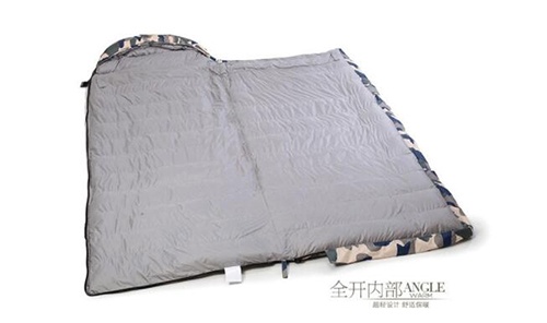 1、立襯式信封式羽絨睡袋,每兩條羽絨睡袋可以拼接成一個雙人睡袋。