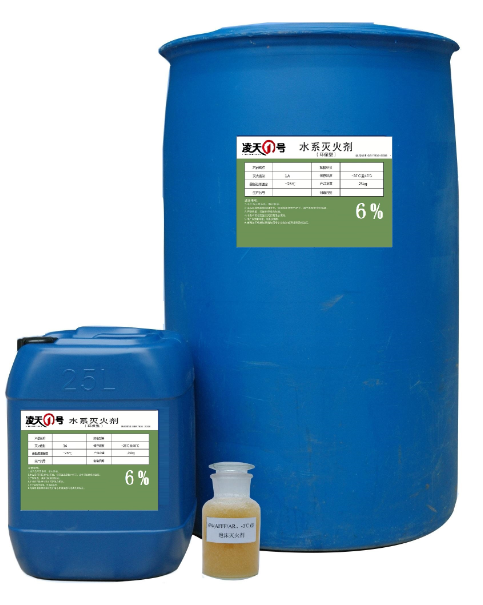 水系滅火劑是一種多功能、高效、環保、無毒、可100%自然降解的植物型滅火劑,由生物高分子聚合物、碳氫表面活性劑、阻燃劑、穩定劑、助劑等多種成份組成的環保型滅火劑,以撲滅A、B、E、F類火災,
