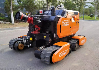 RXR-M120GD 全地形消防滅火機器人采用柴油發動機為動力源,使用液壓傳動系統驅動液壓馬達行走,應用于撲救地形復雜、人員和常規消防滅火機器人無法靠近的火災現場,也可用于地鐵車站與隧道火災、大跨度、大空間場所火災、石化油庫與煉制廠火災、地下設施與貨場火災以及危險火災目標的進攻與掩護。本產品具備遠程操控、全景顯示等功能,同時具備超高的越野性能;集成式液壓剎車裝置,可有效駐車剎車,防止整機溜車。