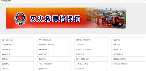 火災撲救管理功能模塊,可查閱到多種火災類型撲救選擇,及再點擊具體某一個火災撲救措施,進入詳情頁,及自動播放火災撲救措施語音播報,及展示撲救火災的要點、火情偵查、處置對策、注意事項等詳情描述。支持語音下載功能。