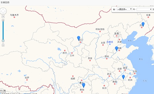 車輛信息管理功能,可在地圖上查閱所有車輛標注當前位置及點擊某個具體的車輛,顯示該車輛的車牌號、車輛類型、車輛名稱、車輛狀態、車輛經緯度坐標、車輛及功能描述詳情。