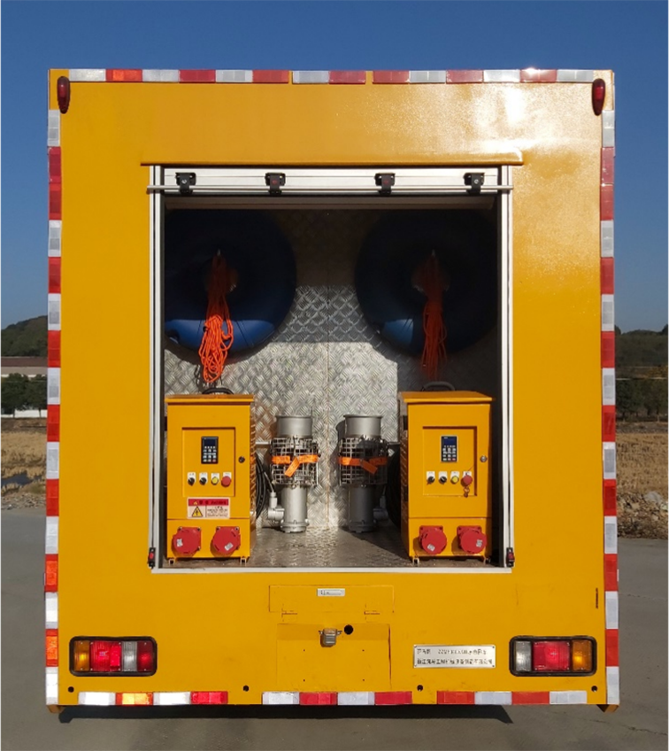 單排排澇車(1200m3),是在慶鈴二類汽車底盤的基礎(chǔ)上依據(jù)排水車的特點,配置柴油發(fā)電機組、兩臺大流量便攜式潛水泵及控制系統(tǒng)、照明系統(tǒng)等設(shè)備改裝成型的專項作業(yè)車。整車尺寸較小,通過性較強,廣泛適用于各類搶險現(xiàn)場。