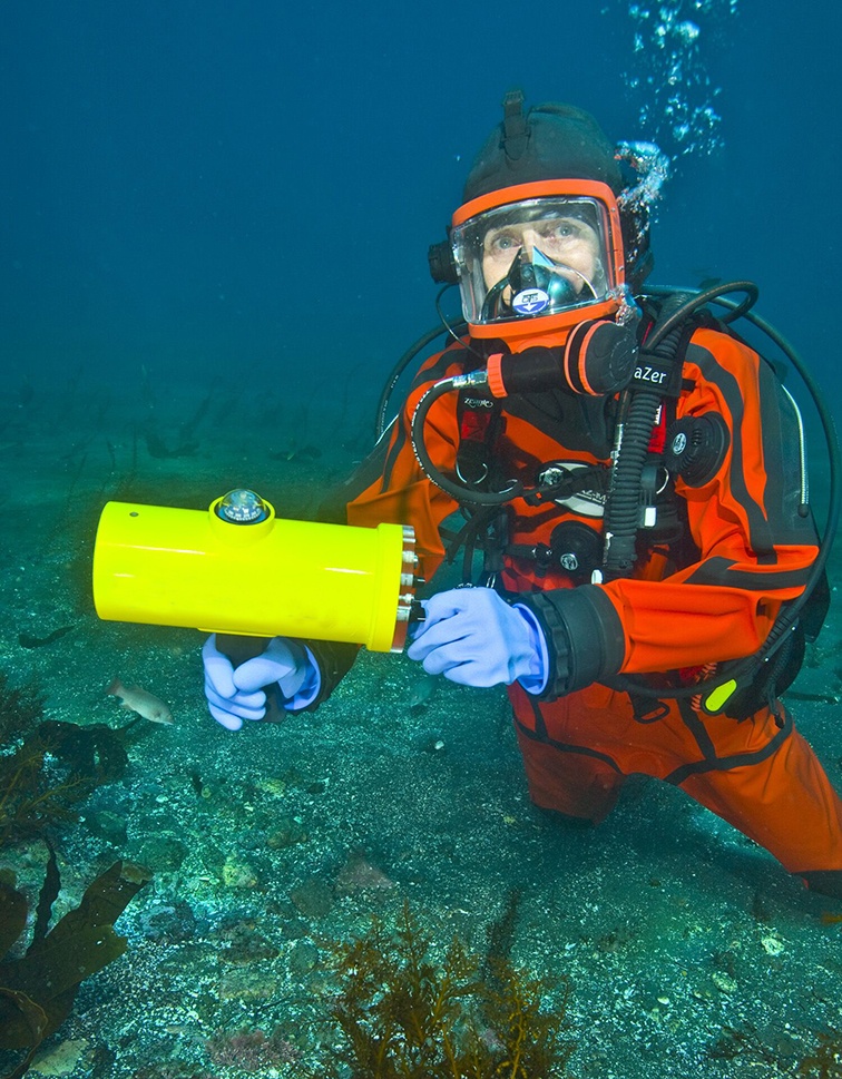 手持聲吶探測儀既可以潛水員手持也可以從船上往下放。接收器的操作非常簡單,您只需要選擇需要掃描的頻率,然后在360度范圍內掃一圈。就會有聲音和警示燈信號用來提醒操作人員有目標信號源的存在。一旦檢測到目標頻段的信號,潛水員就可以通過安裝在接收器上的指南針朝著目標方向游動,越是接近目標物體時聲音信號越強,控制器上的LED 燈的亮度燈泡點亮的數量越多。如果要定位其他的發射源,只需要通過控制面板上的旋鈕調節頻率即可。