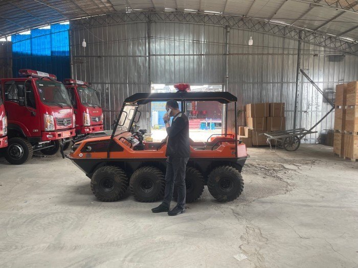 當火災出現時,在復雜地形和環境下,沒有時間等待重型救援裝備能順利及時到達現場。水陸兩棲全地形車可立刻準備好,部署消防人員,使用車上搭載的噴霧和泡沫設備在現場抑制火源。配備同樣的裝備來保護火災易發地區,風險防范于未然。