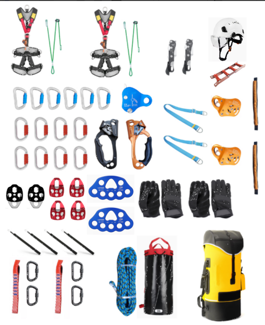 由滑輪、漂浮救生繩、護輪、靜力繩、繩包、護繩套、鋼纜錨點、攀爬鉤 、安全鉤等組成。