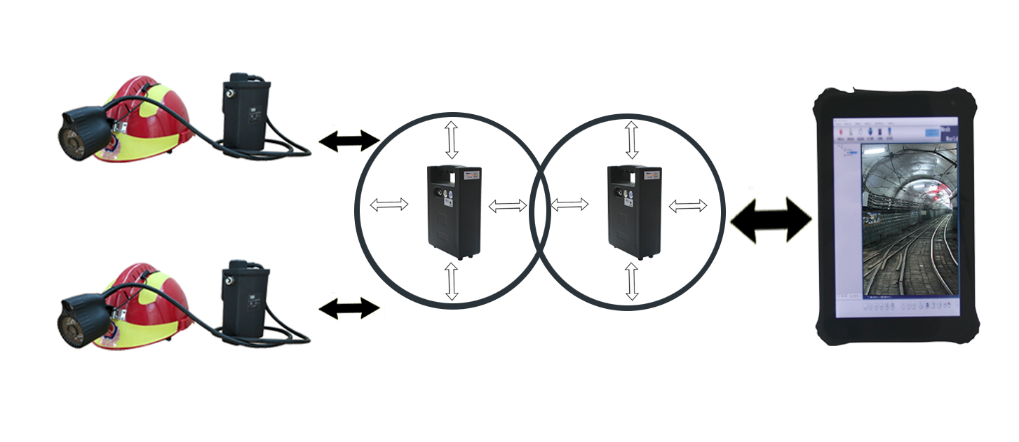 該系統(tǒng)采用無線通信網(wǎng)絡采用自組織、自愈合方式快速形成多跳鏈狀或網(wǎng)狀網(wǎng)拓撲結(jié)構(gòu),無線通信距離不小于2000米,具有快速部署、高帶寬、低時延、可靠性強等特點。井下救援人員或工作人員,通過佩戴礦用本安型平板計算機、配套的低照度攝像頭自帶語音通話、無線中繼器等裝備,將現(xiàn)場的實時圖像、語音等信息實時回傳到指揮平臺,調(diào)度指揮人員可以實時了解現(xiàn)場情況,并對現(xiàn)場人員進行調(diào)度指揮。