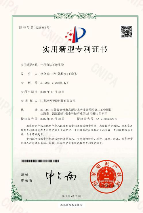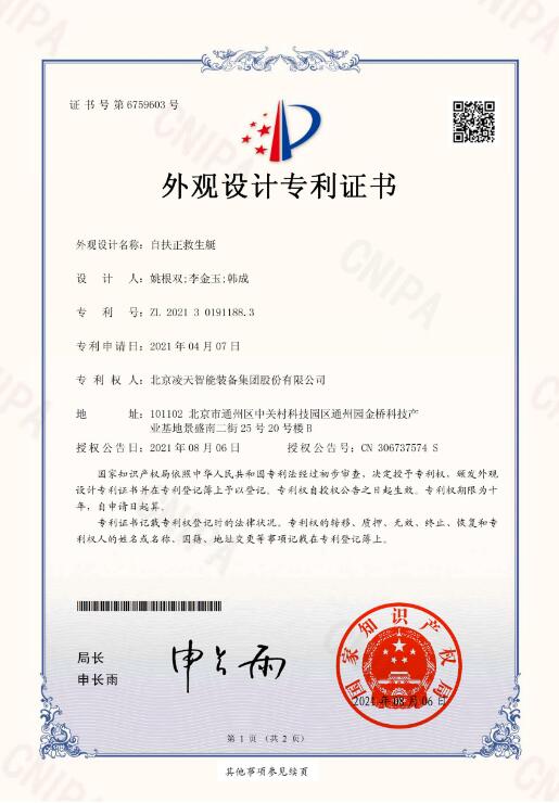 1. ★自扶正功能:將自扶正激流救生艇閑傾90°后手動(dòng)釋放,能自動(dòng)恢復(fù)到正常狀態(tài),扶正后人員安全,扶正后不影響整艇的任何功能。