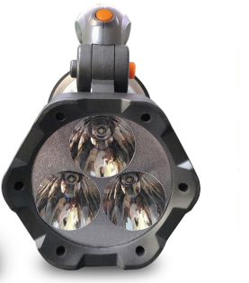 2.高亮照明3種模式可選:頭部3顆LED和優質聚光杯的高亮度照明,配合三檔90度角度的可調手提把手,滿足遠程聚光探照和近光散光照明目標的需求:中間10顆LED的野營燈/臺燈/帳篷燈等多用途照明需求。